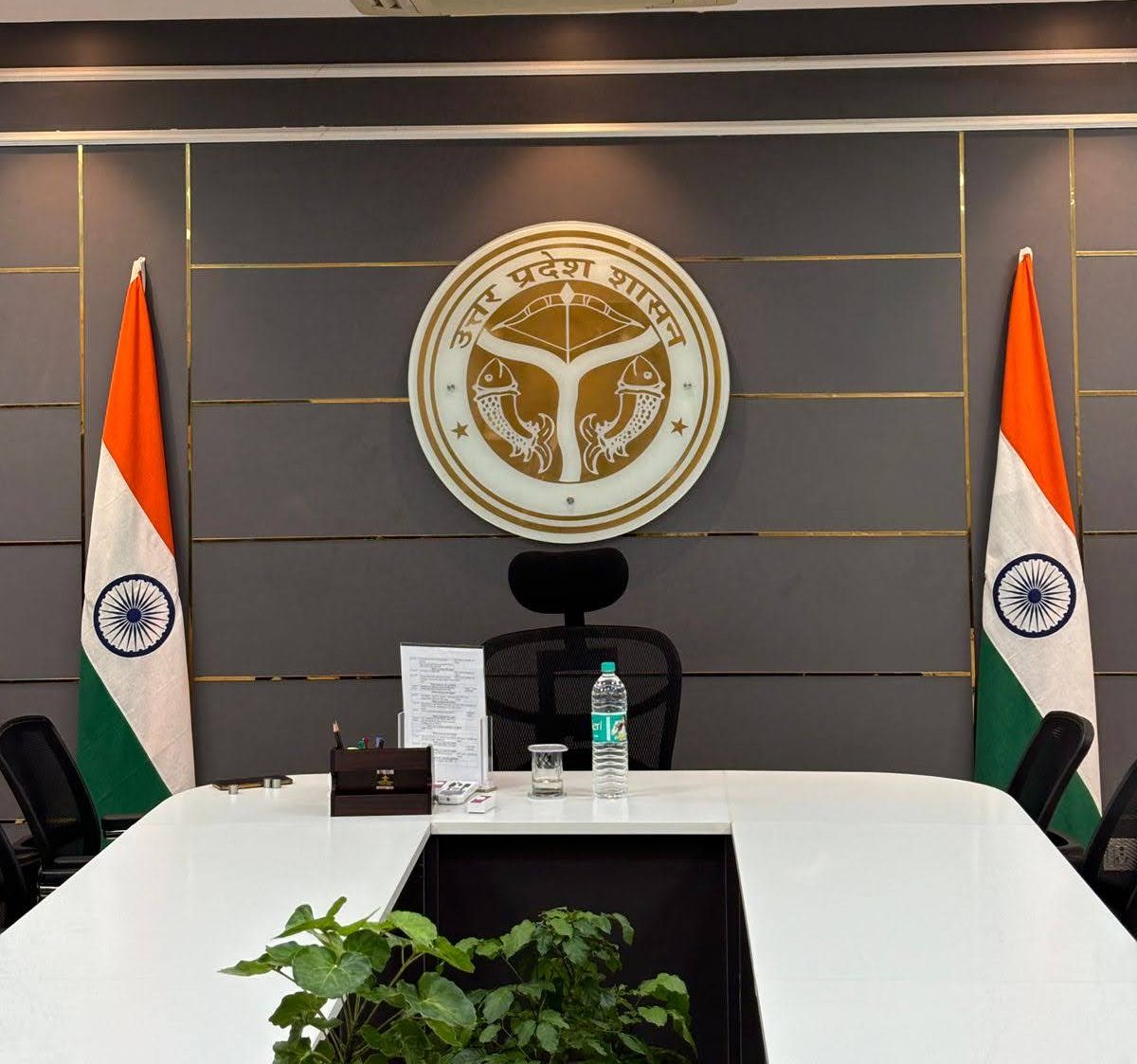 ✅ Respect for Legacy From portraits of national leaders to the emblem of Uttar Pradesh, the space integrates cultural respect without overwhelming the viewer — balancing formality and modern simplicity.